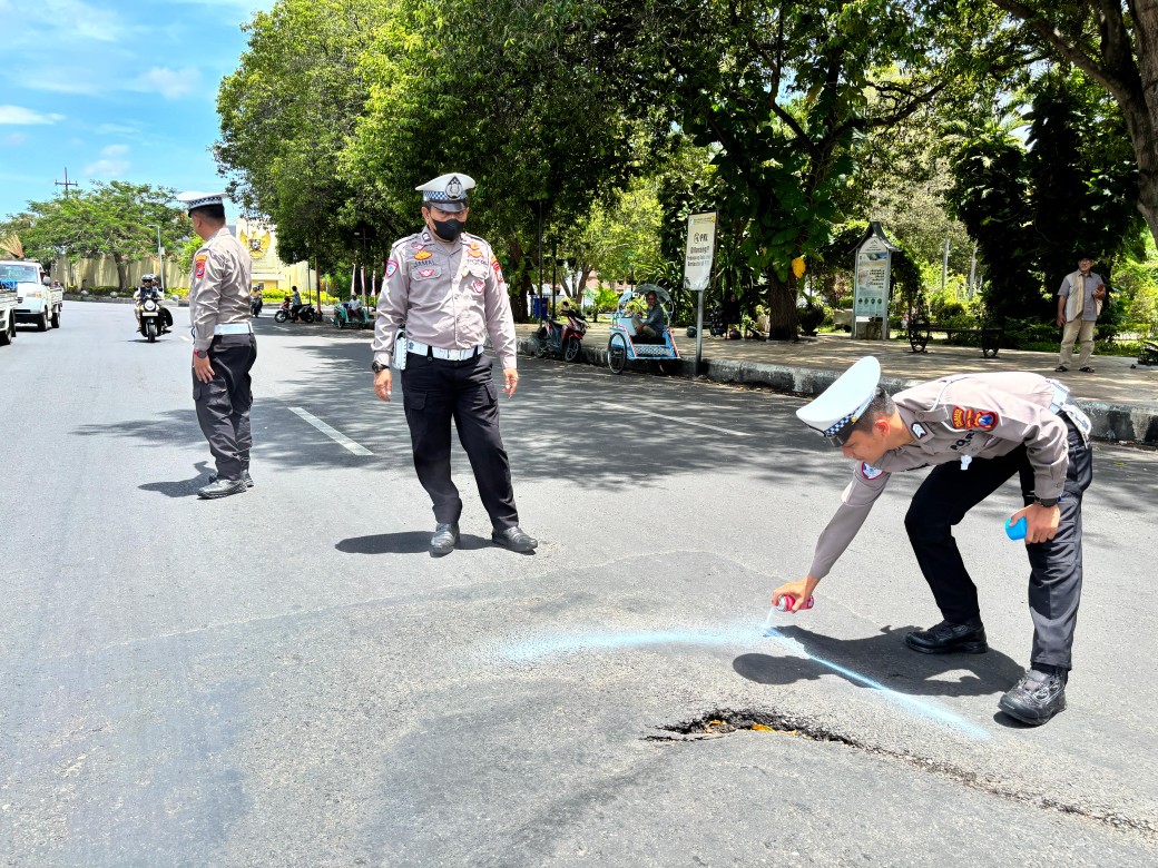 Satlantas Polresta Banyuwangi Gelar Patroli Jalan Berlubang, Antisipasi Kecelakaan di Pusat Kota