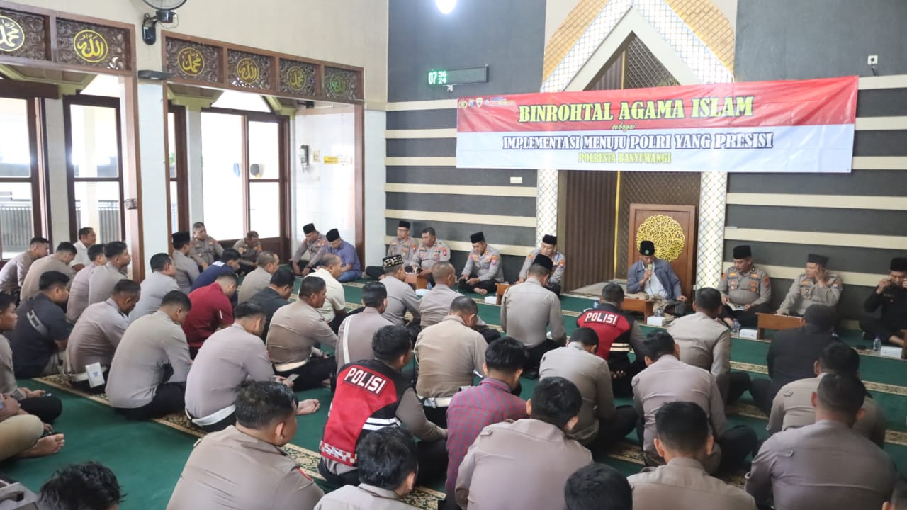 Kegiatan Binrohtal kali ini dilaksanakan pada Kamis (6/11/2025) bertempat di Masjid Roudhatul Jannah Mapolresta Banyuwangi. Kegiatan ini diikuti oleh seluruh personel Polri, ASN, serta pejabat utama Polresta Banyuwangi.