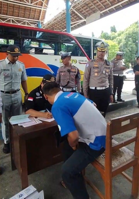 Kabar Pena, BANYUWANGI – Dalam rangka mendukung Program Mahameru Lantas, Satuan Lalu Lintas (Satlantas) Polresta Banyuwangi menggelar kegiatan Tantu Pagelaran berupa inspeksi keselamatan terhadap bus pariwisata dan angkutan penumpang di Terminal Sri Tanjung, Selasa (6/5).