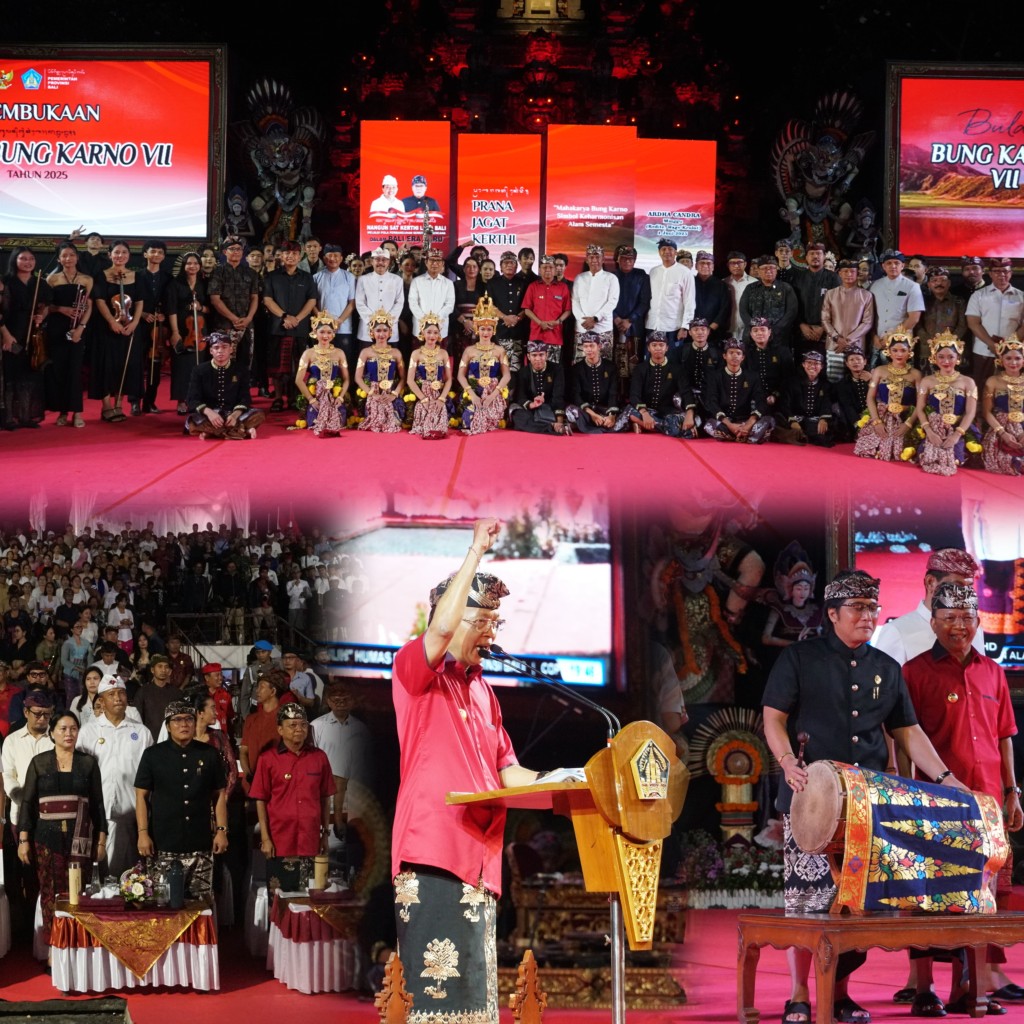 Kabar Pena, DENPASAR — Gubernur Bali Wayan Koster dan Wakil Gubernur I Nyoman Giri Prasta secara resmi membuka gelaran Bulan Bung Karno di Aula Terbuka Ardha Candra Art Center Denpasar, Minggu 1 Juni 2025. Beragam lomba akan digelar pemerintah provinsi Bali selama bulan Juni untuk mengenang dan menularkan ajaran Bapak Proklamator yang juga Presiden Pertama RI Ir Soekarno (Bung Karno).