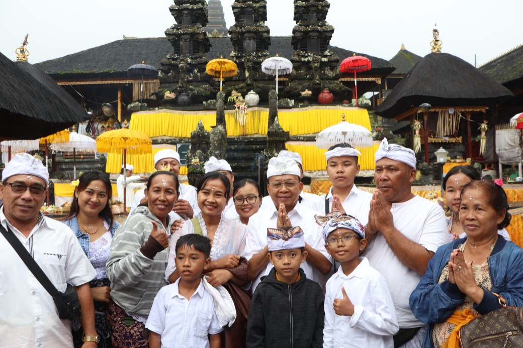 Bertempat di Pura Merajan Kanginan, Gubernur asal Desa Sembiran, Buleleng ini tidak hanya hadir untuk persembahyangan, tetapi juga secara aktif terlibat dalam megambel (menabuh gamelan) bersama para pemedek. Tarian sakral Topeng Sidakarya yang dipentaskan di Jaba Pura pun semakin hidup dengan alunan gamelan yang dipimpin langsung oleh orang nomor satu di Bali tersebut.
