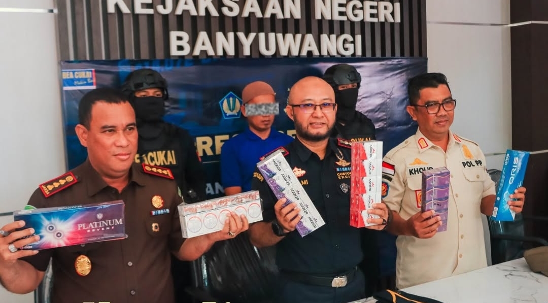 Kabarpena.com, BANYUWANGI – Bea Cukai Banyuwangi kembali menegaskan komitmennya dalam memerangi peredaran rokok ilegal di wilayah Kabupaten Banyuwangi. Bersama Satuan Polisi Pamong Praja (Satpol PP) dan Kejaksaan Negeri Banyuwangi, instansi ini menggelar konferensi pers terkait penanganan perkara penyidikan tindak pidana di bidang cukai, Rabu (7/8/2025).