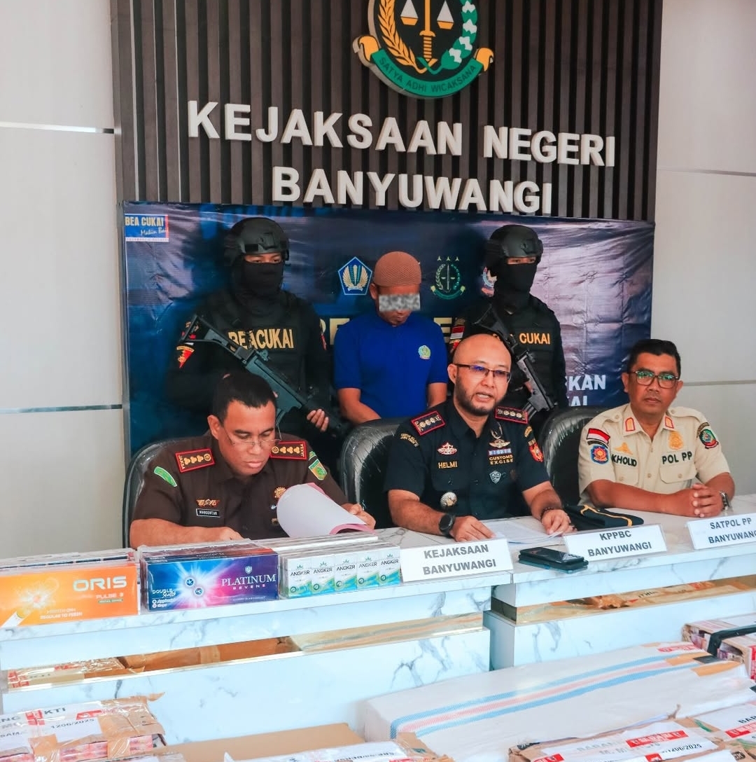 Kabarpena.com, BANYUWANGI – Bea Cukai Banyuwangi kembali menegaskan komitmennya dalam memerangi peredaran rokok ilegal di wilayah Kabupaten Banyuwangi. Bersama Satuan Polisi Pamong Praja (Satpol PP) dan Kejaksaan Negeri Banyuwangi, instansi ini menggelar konferensi pers terkait penanganan perkara penyidikan tindak pidana di bidang cukai, Rabu (7/8/2025).