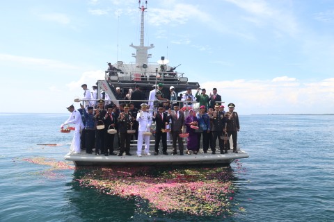 “Tabur bunga ini untuk mengenang jasa para pahlawan, bukan hanya yang berjuang di darat, tetapi juga para pahlawan laut yang mempertahankan wilayah maritim Indonesia dari penjajahan,” ujarnya.