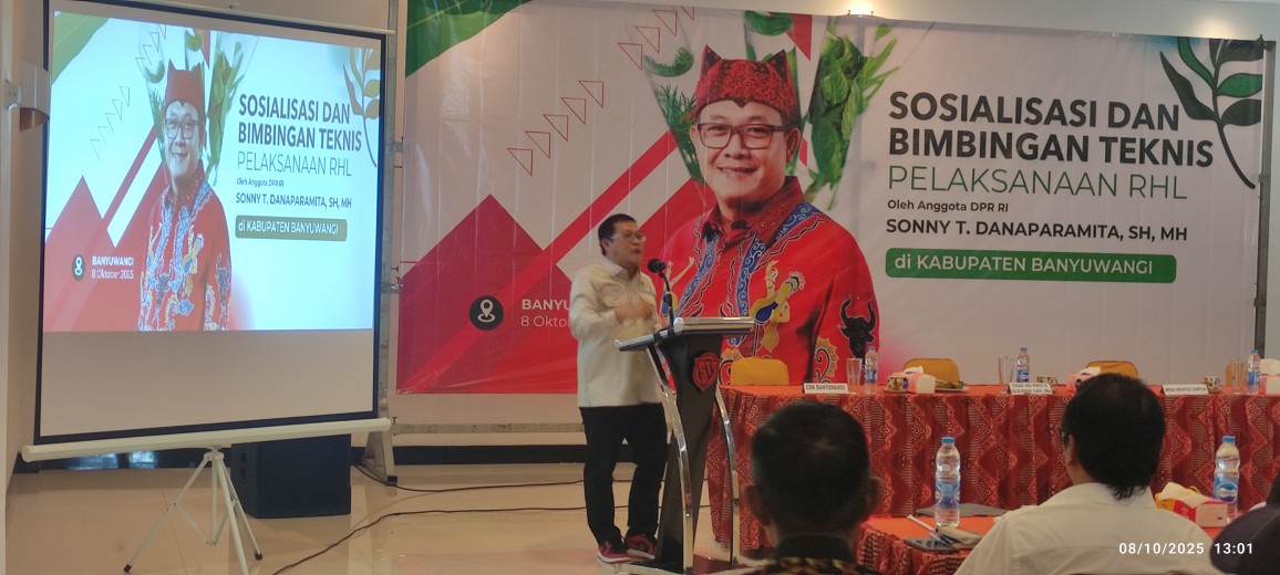 Kabarpena.com, BANYUWANGI — Program Sosialisasi dan Bimbingan Teknis (Bimtek) Rehabilitasi Hutan dan Lahan (RHL) yang digagas oleh Komisi IV DPR RI bersama BPDAS Brantas Sampean terus berlanjut hingga hari ketiga. Kali ini kegiatan digelar di wilayah Banyuwangi Selatan, tepatnya di Ballroom Hotel Baru Indah, Jajag, pada Rabu (08/10/2025).