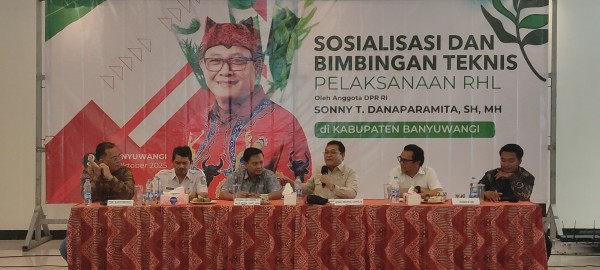 Kegiatan ini dihadiri langsung oleh Anggota Komisi IV DPR RI, Sonny T. Danaparamita, S.H., M.H., bersama jajaran pejabat dari Balai Pengelolaan Daerah Aliran Sungai (BPDAS) Brantas Sampean, Cabang Dinas Kehutanan Banyuwangi, serta para penerima manfaat program dari wilayah selatan Banyuwangi.