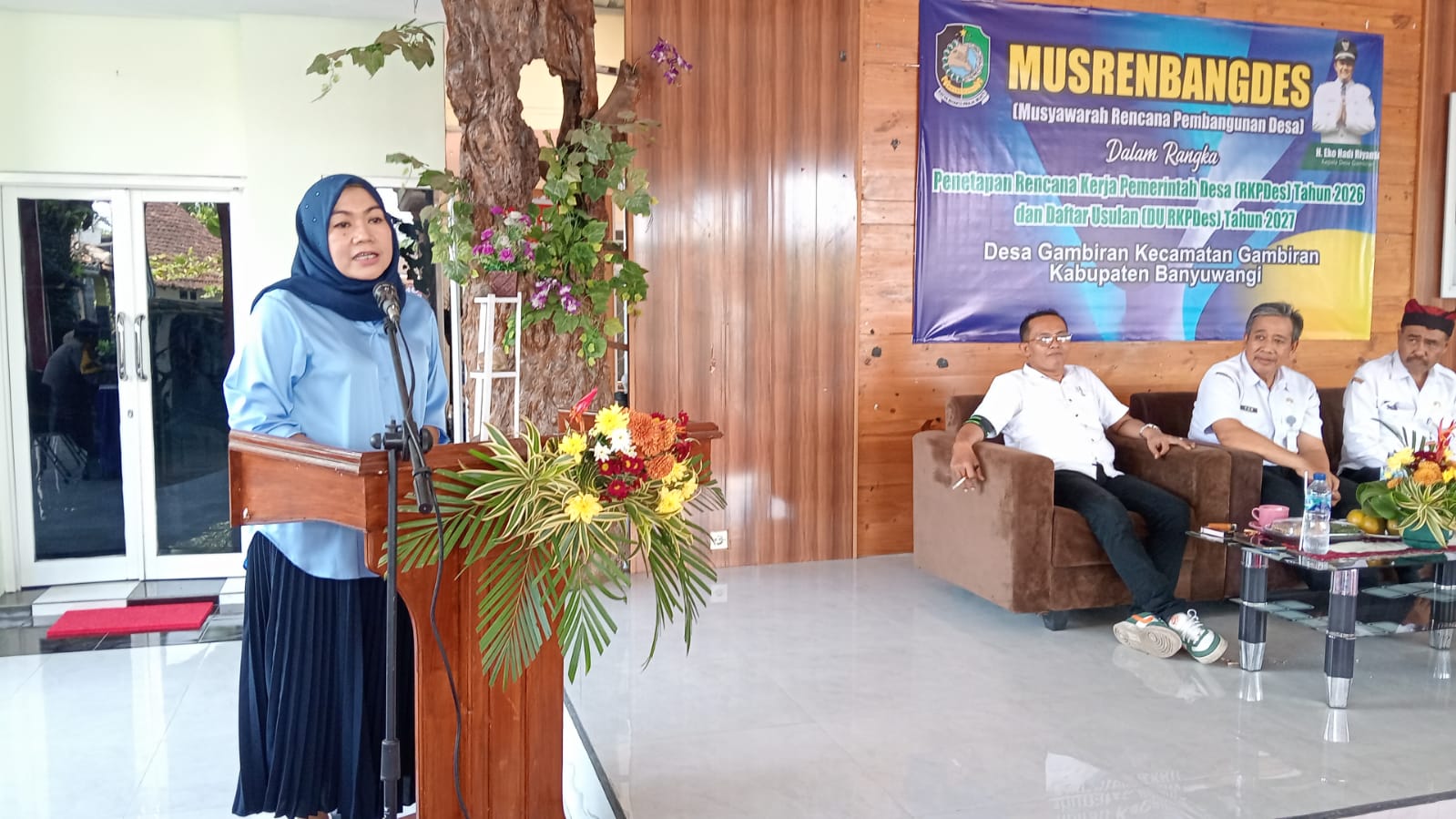 Emy Dwi Lestari berharap Musrenbangdes Desa Gambiran menghasilkan rumusan program yang realistis, berorientasi pada kesejahteraan warga, dan dapat direalisasikan secara efektif pada tahun 2026 mendatang.